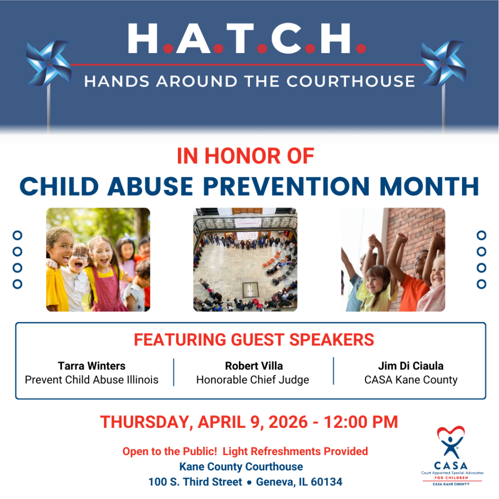 CASA Kane County is a non-profit, volunteer-driven organization, dedicated to advocating for children who have experienced abuse or neglect and are subsequently placed in foster care.
